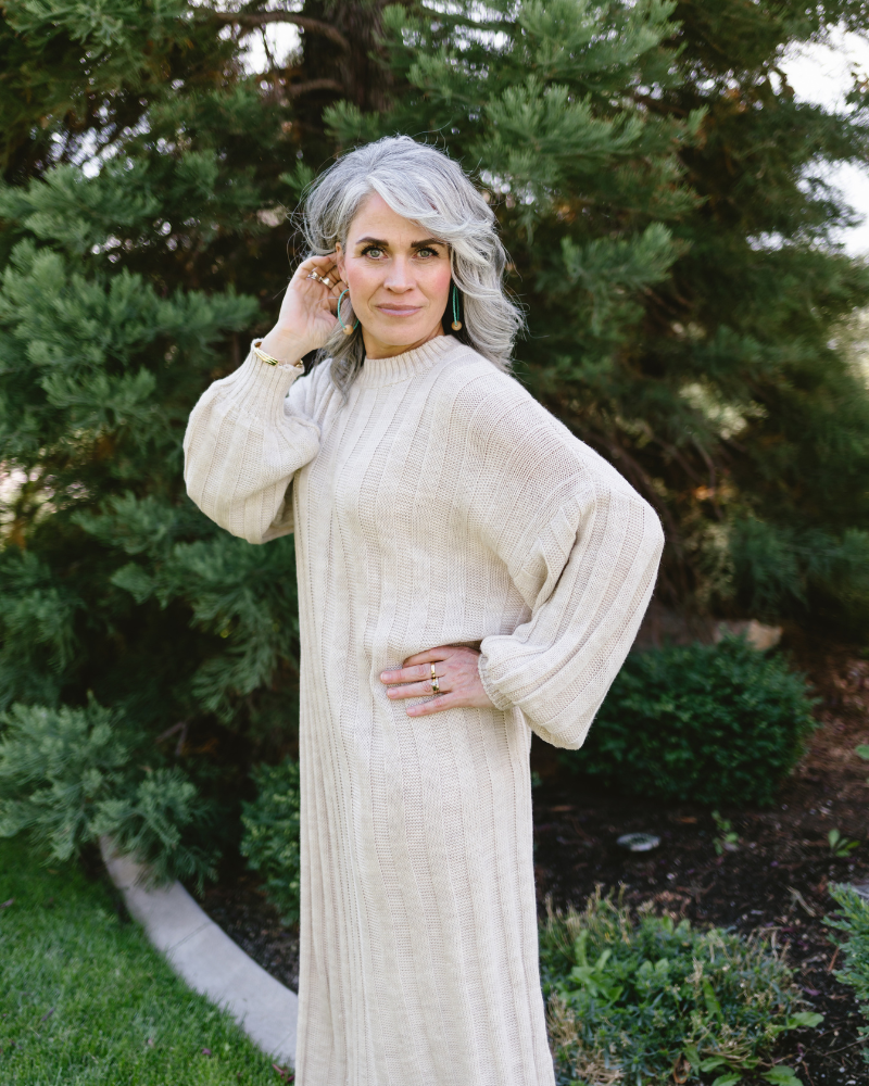 Elevate your wardrobe with this Ribbed Long Sleeve Sweater Dress, designed to combine comfort and style effortlessly. The fitted crewneck top flatters your silhouette, while the softly flared mid-length skirt adds a touch of elegance and movement. Crafted from a soft ribbed fabric, it offers warmth without sacrificing breathability, making it ideal for both casual outings and more formal events. Whether layered with boots for a cozy fall look or paired with heels for evening sophistication, this versatile dress ensures you feel confident and chic all day long.