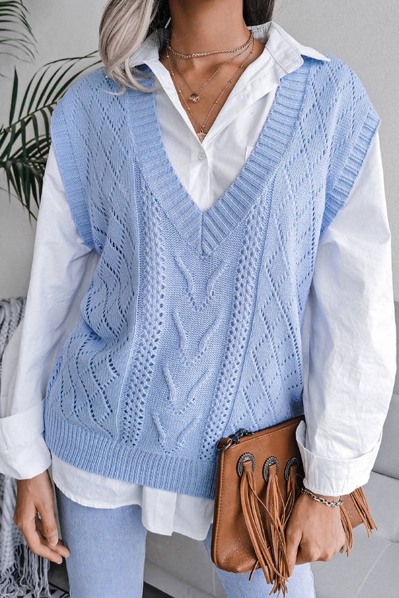 Elevate your wardrobe with the V-Neck Detailed Sweater Vest, designed for women who value comfort and style. This oversized, loose-fit knit vest offers a relaxed silhouette perfect for layering over your favorite tees or blouses. Crafted with textured detailing around the neckline, it adds a subtle yet elegant touch to any outfit. Whether you're dressing up for a casual day out or adding warmth during cooler months, this versatile sweater vest effortlessly combines fashion and function, making it an essential piece for your everyday look.
